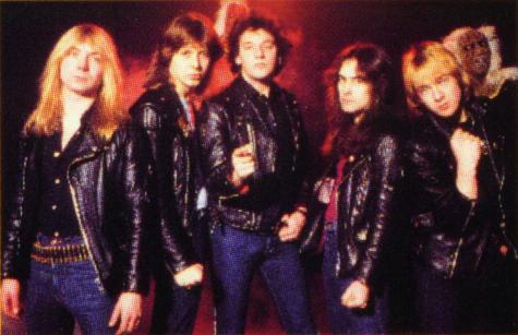 Da esquerda para a direita (Dave Murray, Clive Burr, Paul Di Anno, Steve Harris e Adrian Smith. |